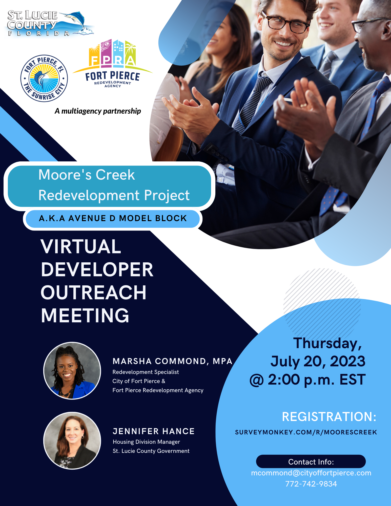 Through a multi-agency partnership, the St. Lucie County Government, the City of Fort Pierce, and the Fort Pierce Redevelopment Agency (FPRA) are working together to bring a mixed-use development with affordable housing to the Lincoln Park District. The proposed site consists primarily of county-owned parcels located generally at Ave. D and 7th Street.